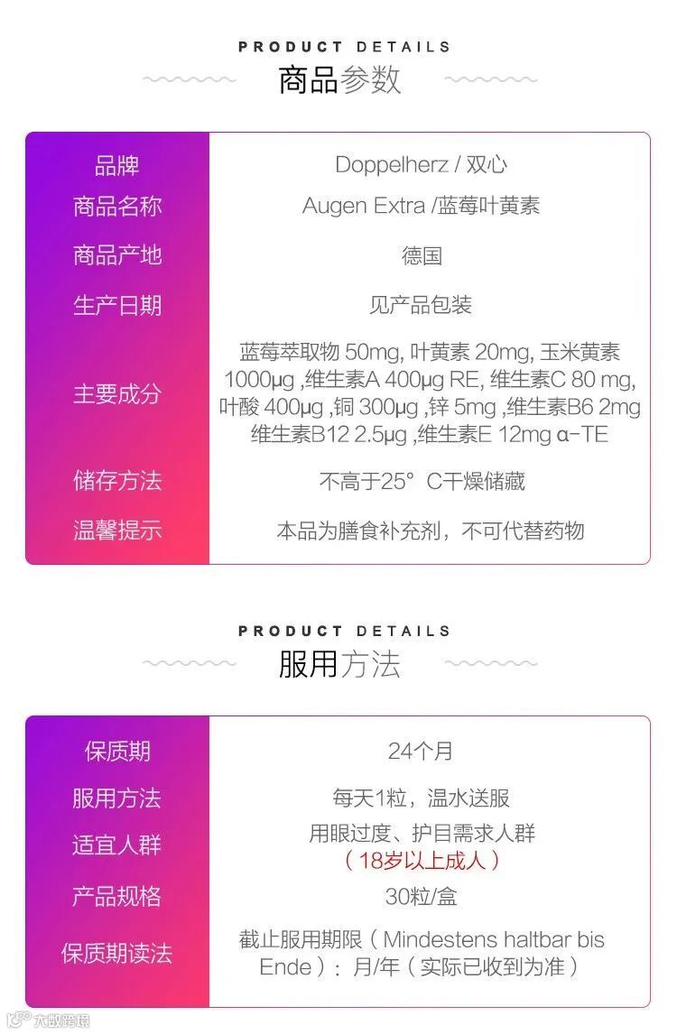 【余额提货】德国Doppelherz双心蓝莓叶黄素胶囊30粒/1盒