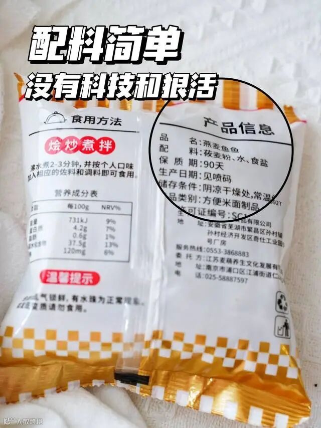 配料表干净,市面上唯一可常温储存燕麦鱼鱼