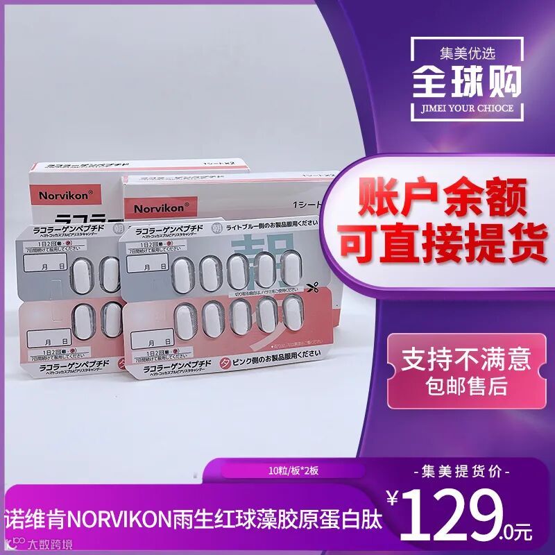 【余额提货】诺维肯Norvikon雨生红球藻胶原蛋白肽10粒/板*2板