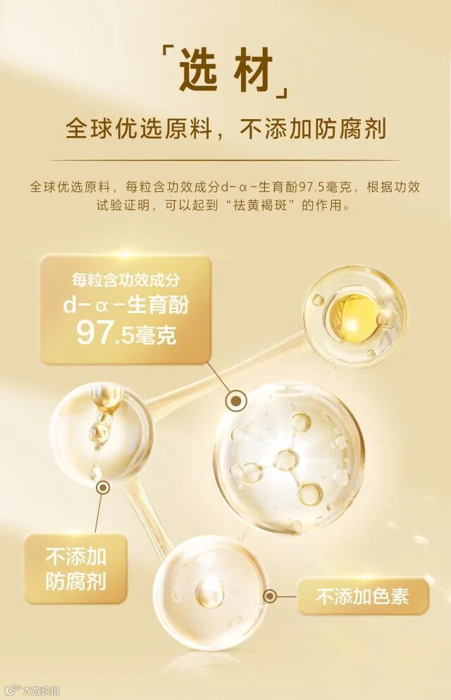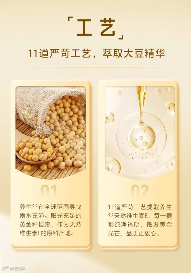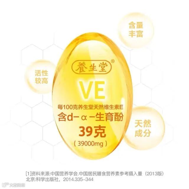 纯度是检验天然维生素E的重要标准之一,养生堂天然维生素E,每100g含VE39g,且VE纯度高达96%以上,纯净透明。