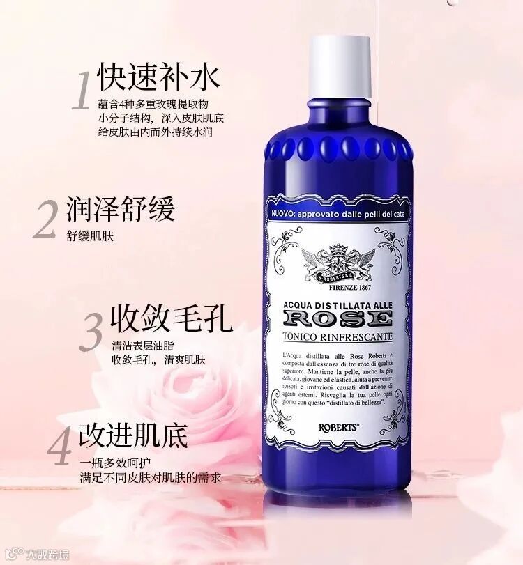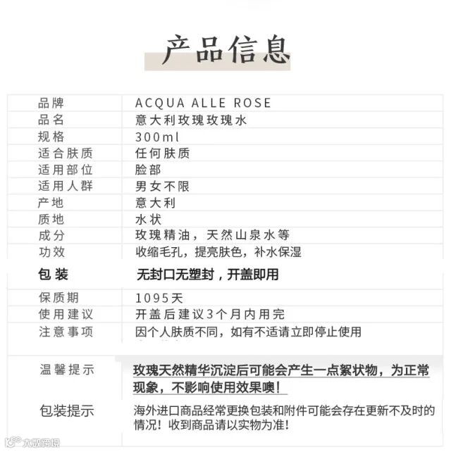 【试用补贴】意大利ACQUA ALLE ROSE 古法天然玫瑰水爽肤水300ml*1瓶