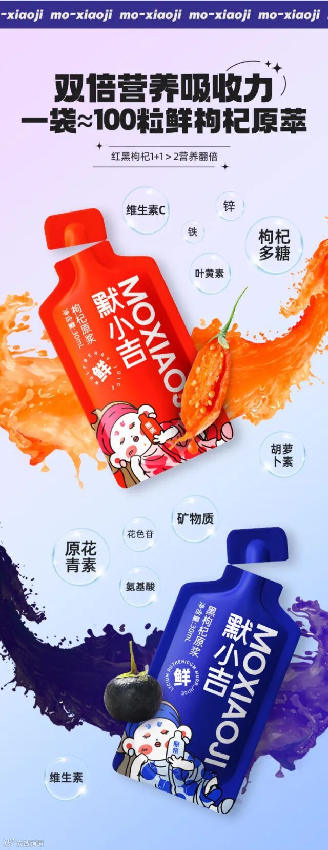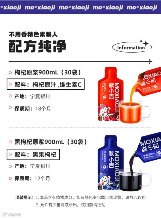 【余额提货】杞里香 默小吉鲜榨红黑枸杞原浆组合礼盒1800ml(30ml*60袋/盒)