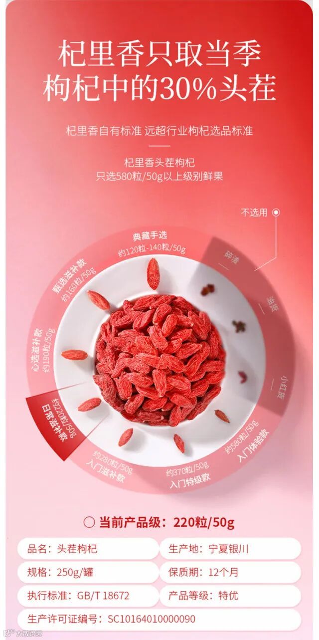 【余额提货】杞里香 宁夏中宁头茬大果贡果枸杞250g*2罐