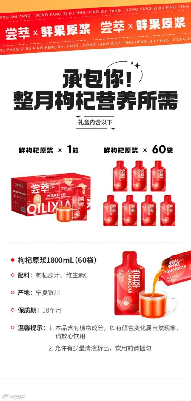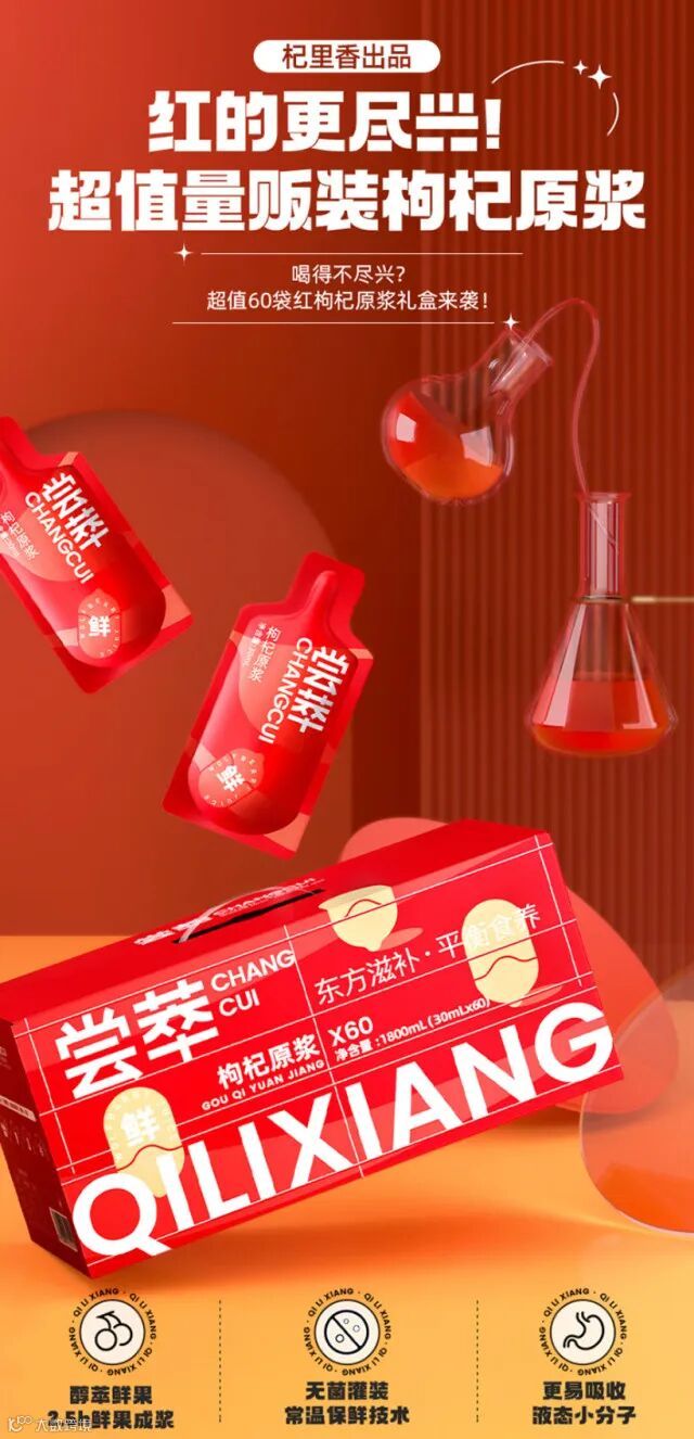 【余额提货】杞里香 尝萃鲜榨红枸杞原浆礼盒1800ml(30ml*60袋/盒)
