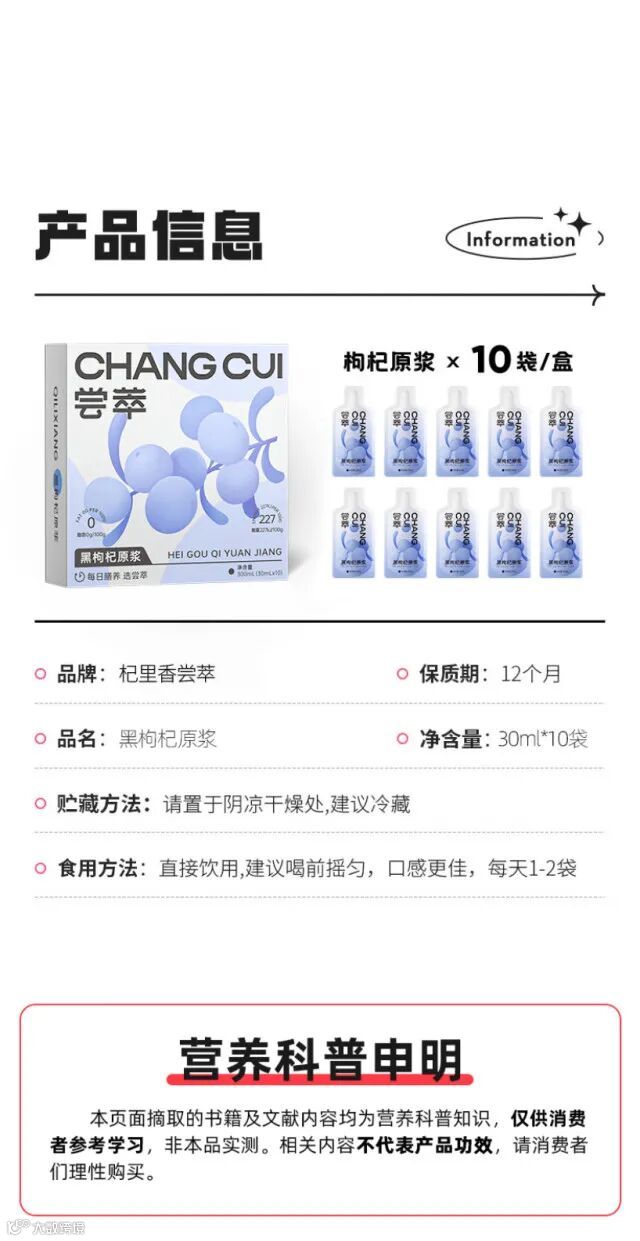 【余额提货】杞里香 尝萃鲜榨黑枸杞原浆300ml盒装(30ml*10袋/盒)