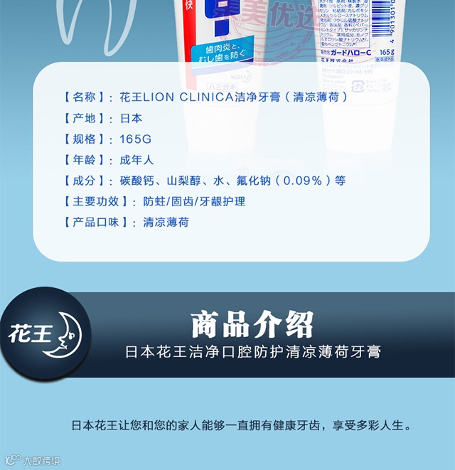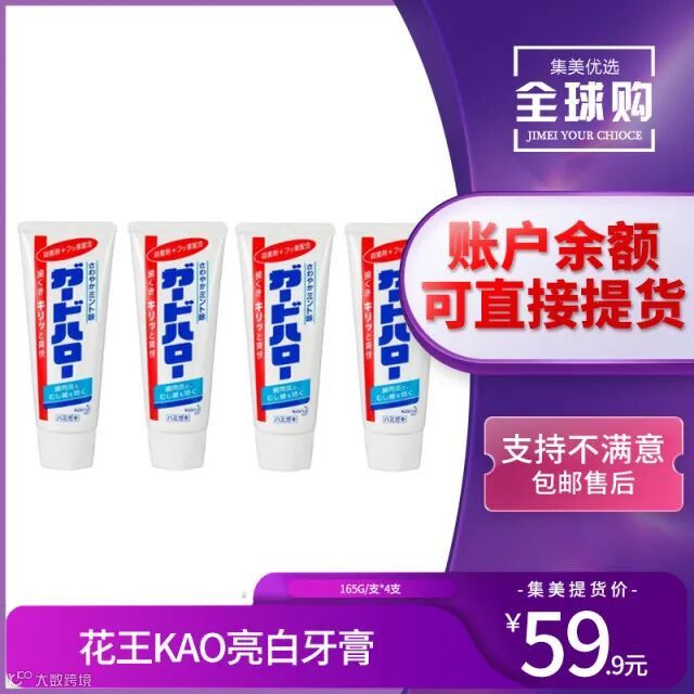 【余额提货】日本原装花王KAO亮白牙膏去除牙垢去牙渍防蛀165g/支*4支