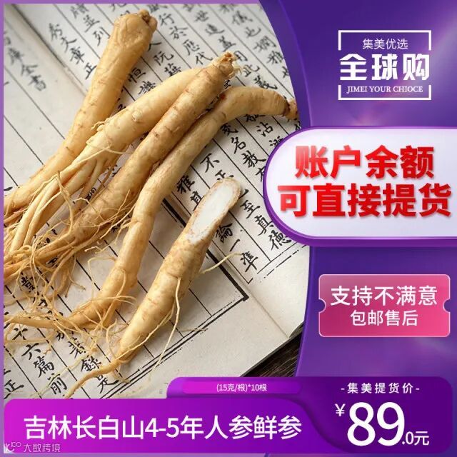 【余额提货】吉林长白山4-5年人参鲜参(15克/根)*10根