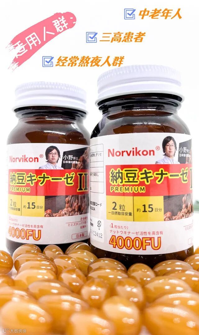 【惊喜20点】日本Norvikon 诺维肯纳豆凝胶30粒*2瓶/组(血栓克星)