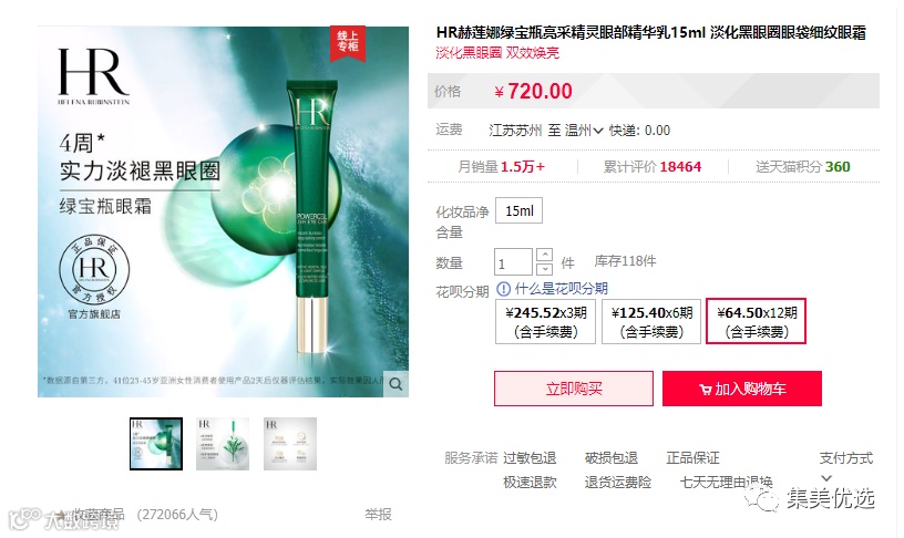 【大牌团购】HR赫莲娜绿宝瓶亮采精灵眼部精华乳15ml 原价:720元 VIP /黑卡M1会员 福利补贴价:569元 一款能让你重返20岁的 绿宝瓶眼部精华 含有VC衍生物 有助于提亮眼周 改善眼部周围暗沉 实力淡褪四周黑眼圈~