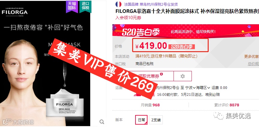 【大牌团购】法国 FILORGA菲洛嘉十全大补柔滑亮泽面膜50ml 原价:419元 VIP /黑卡M1会员 福利补贴价:269元