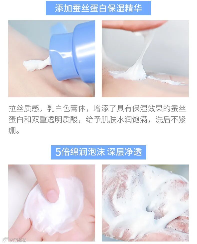 因为这款洗面奶含有蚕丝蛋白保湿精华,让原本舒适的泡沫升级为更加滋润的浓密泡沫,深入毛孔跟肌肤纹理,更能深层清洁面部污垢和油脂。