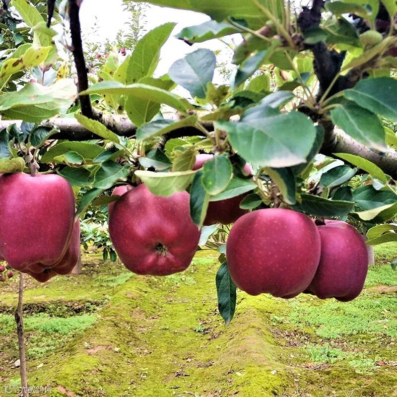 漂亮的花牛苹果正沉甸甸地挂在枝头,