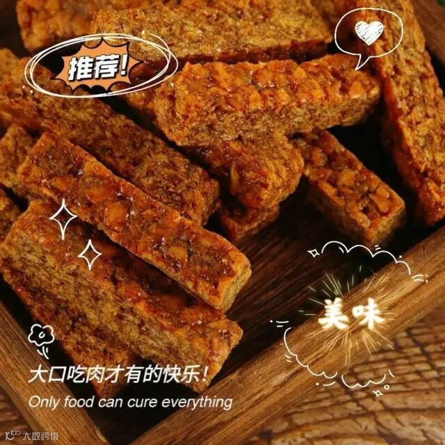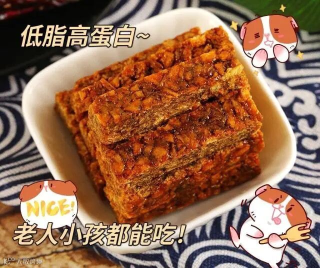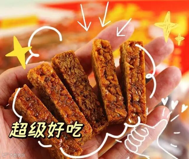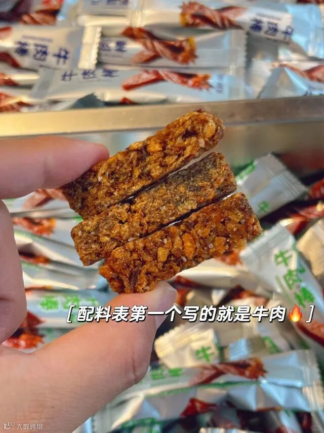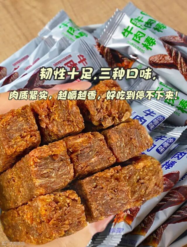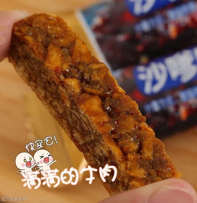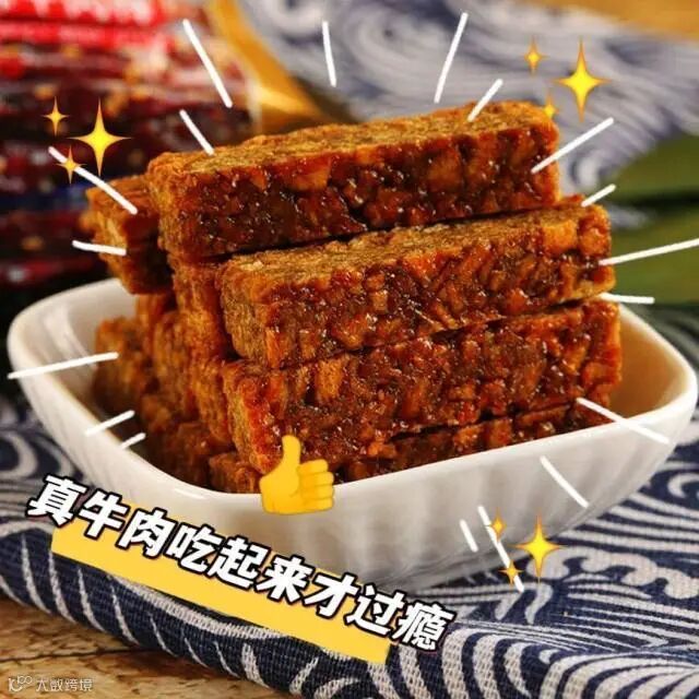 【配料表】牛肉、大豆拉丝蛋白(低温食用豆粕、谷脱粉、大豆分离蛋白)、麦芽糖浆、豌豆粉、白砂糖、鸡精调味料、食用盐、芝麻、食用植物油、食用猪油、酿造酱油(含焦糖色)香辛料、食品添加剂(甘油、谷氨酸钠、乳酸钠、D-异抗坏血酸钠、乳酸链球菌素、山梨酸钾,红曲红、红曲黄色素)、食用香精。
