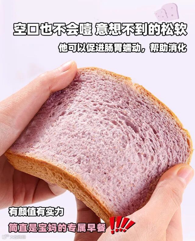 【配料表】:小麦粉、饮用水、(南瓜、紫薯、黑麦)粉(>10%)、全麦粉、谷物、麦芽糖醇、食用油脂制品、鸡蛋、果葡萄浆、酵母、食用盐、海藻糖、山梨糖醇液、甘油、复配乳化剂(山梨糖醇液、单硬脂酸甘油酯、司盘60、蔗糖脂肪酸脂、聚甘油脂肪酸酯、磷脂、植物油)、复配面包乳化剂(单硬脂酸甘油酯、碳酸钙、维生素C、麦芽糖淀粉酶、木聚糖酶、玉米淀粉)、复配面包防腐剂(单硬脂肪甘油醋、山梨酸)、柠檬丙酸钙、山梨酸、食品用香精。