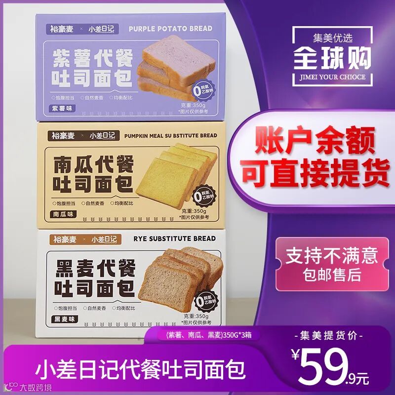 【余额提货】小差日记代餐吐司面包(紫著、南瓜、黑麦)350g*3箱