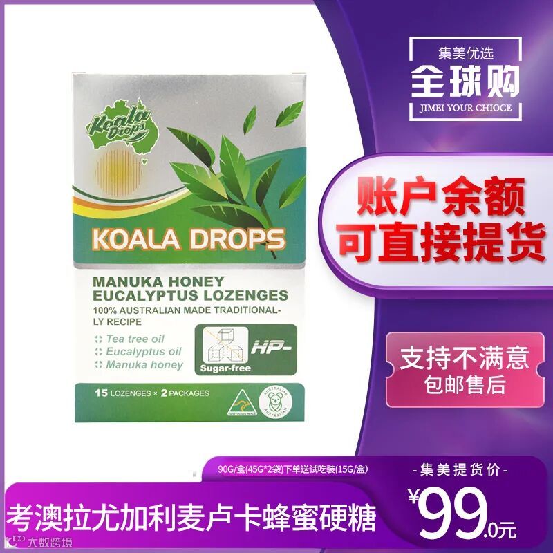 【余额提货】澳大利亚 考澳拉尤加利麦卢卡蜂蜜硬糖90g/盒(45g*2袋)下单送试吃装(15g/盒*5颗)