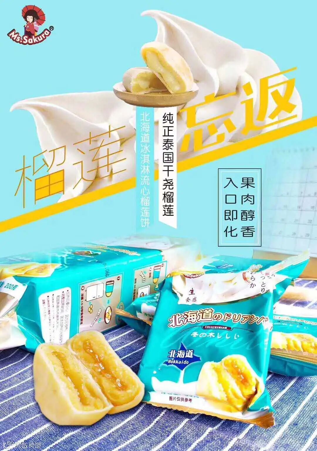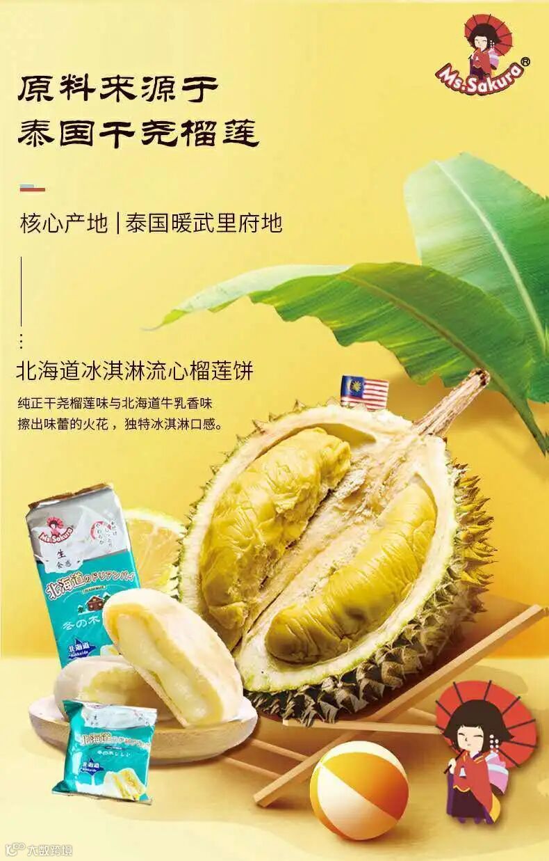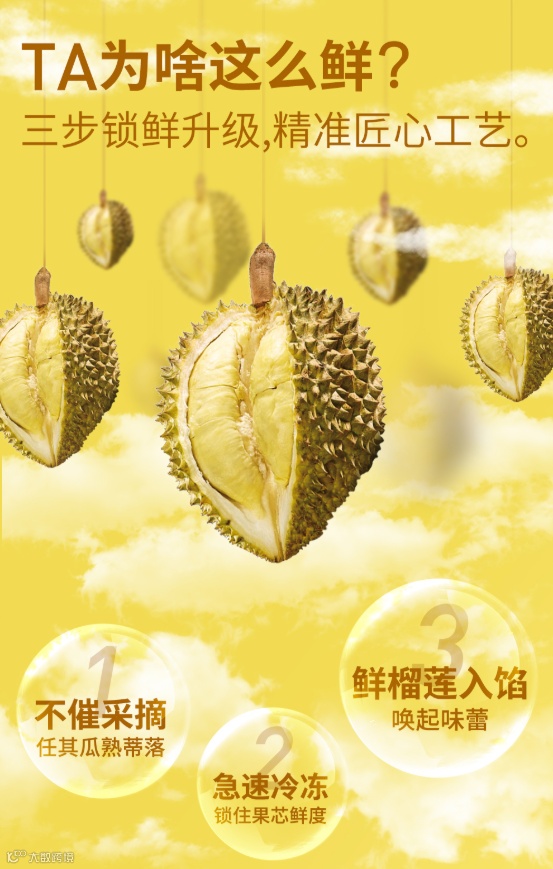 采用泰国干尧榴莲果肉做馅料