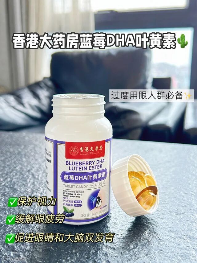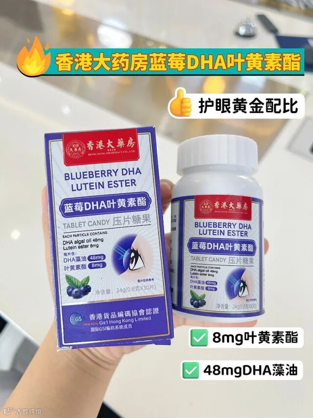 【香港大药房蓝莓DHA叶黄素酯压片糖】