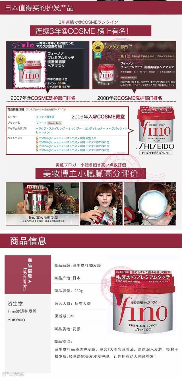 【今日上新】日本本土版 资生堂fino红罐发膜230g/罐