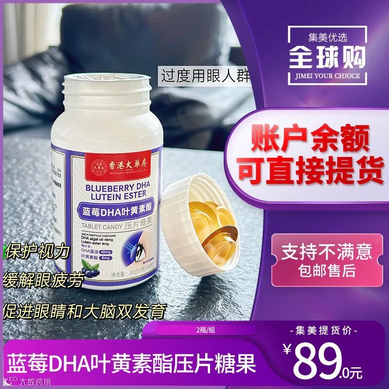 【今日上新】香港大药房蓝莓DHA叶黄素酯压片糖果*2瓶/组