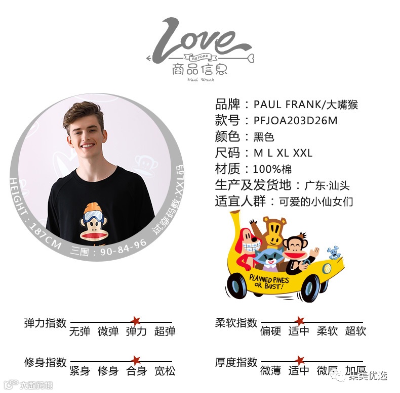 甄选优质的纯棉材质设计, 手感细腻,触感柔和,不会轻易掉色掉毛, 亲和你的每一寸肌肤,刺激皮肤也可以穿, 同时融入大嘴猴的卡通图案装饰其中, 缔造视觉亮点的同时,突显趣味十足的格调。