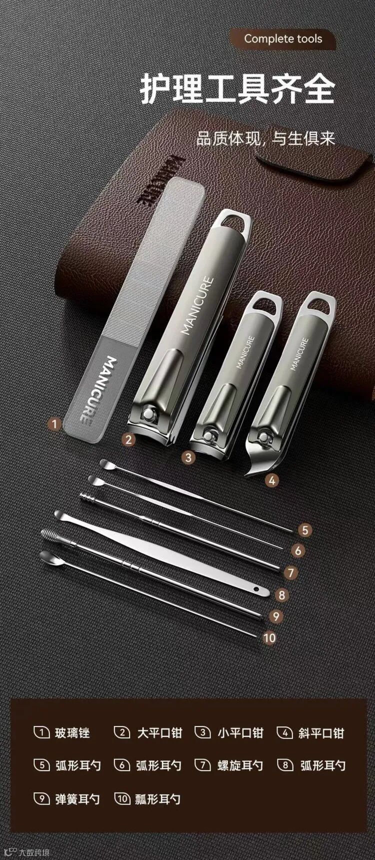 2、含10件配套辅助工具,修手修脚掏耳都可以,