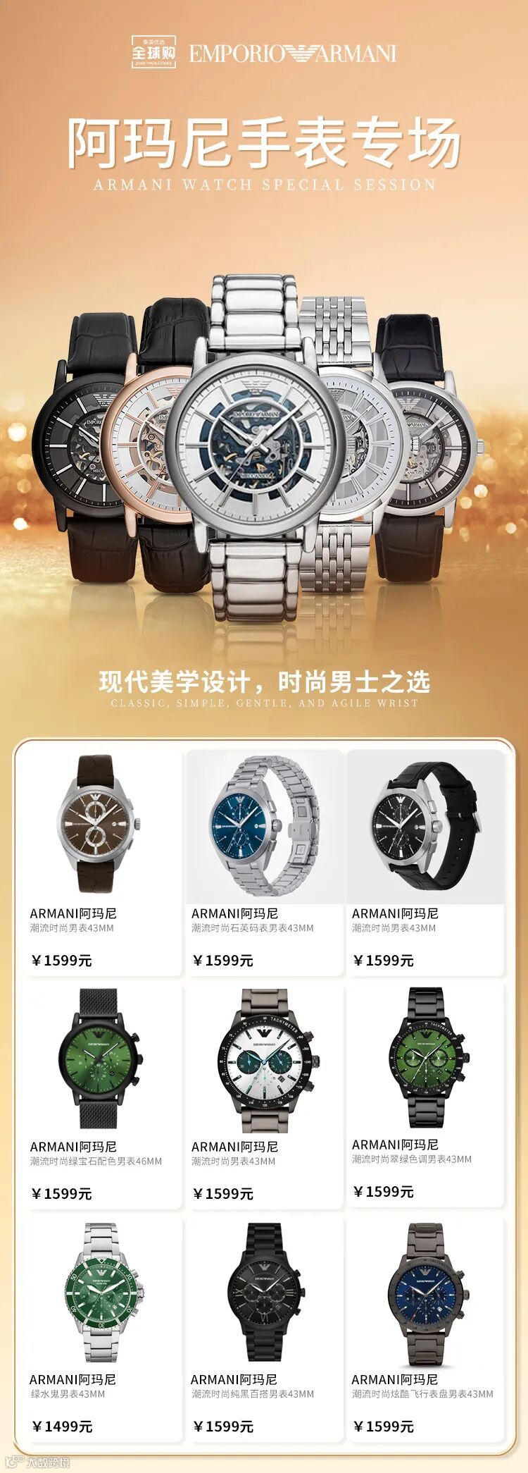 Armani阿玛尼潮流时尚男表43mm(AR11349)