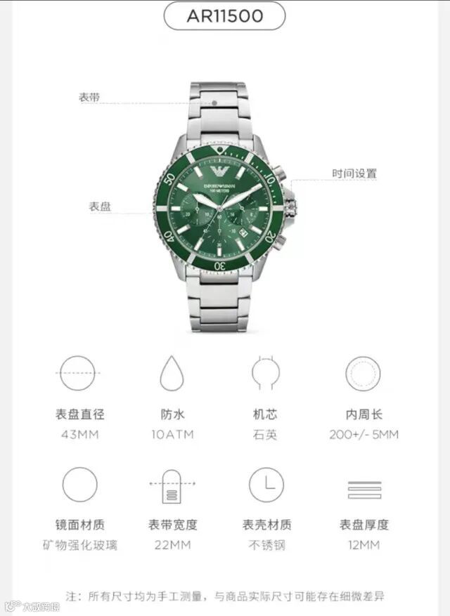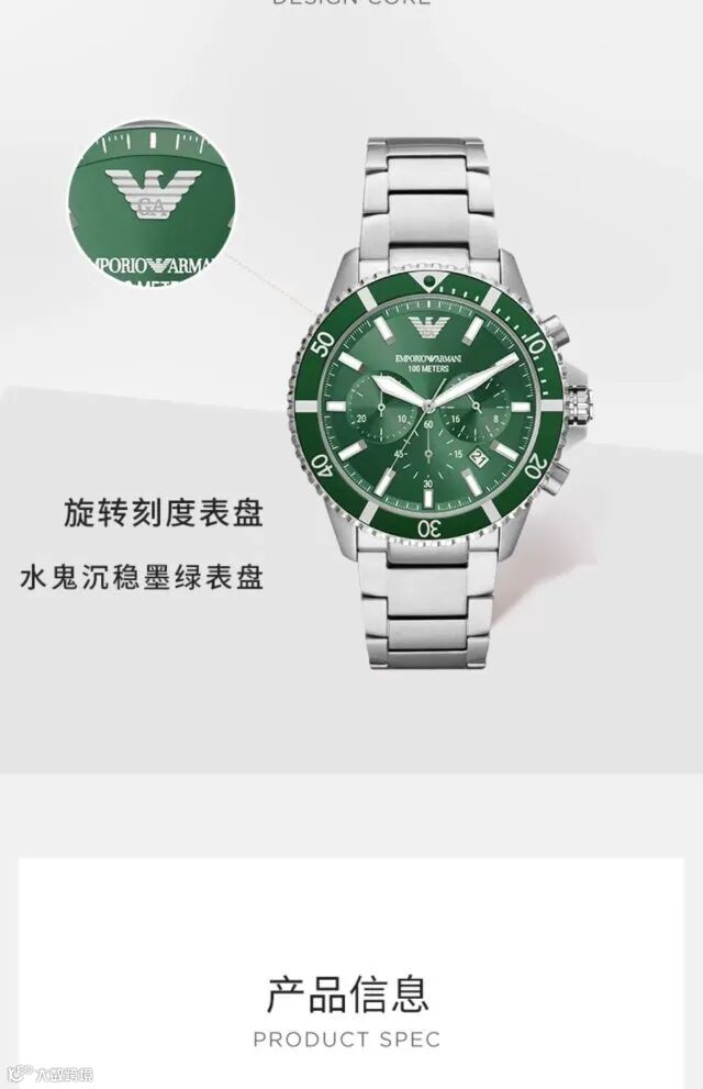 Armani阿玛尼绿水鬼男表43mm(AR11500)