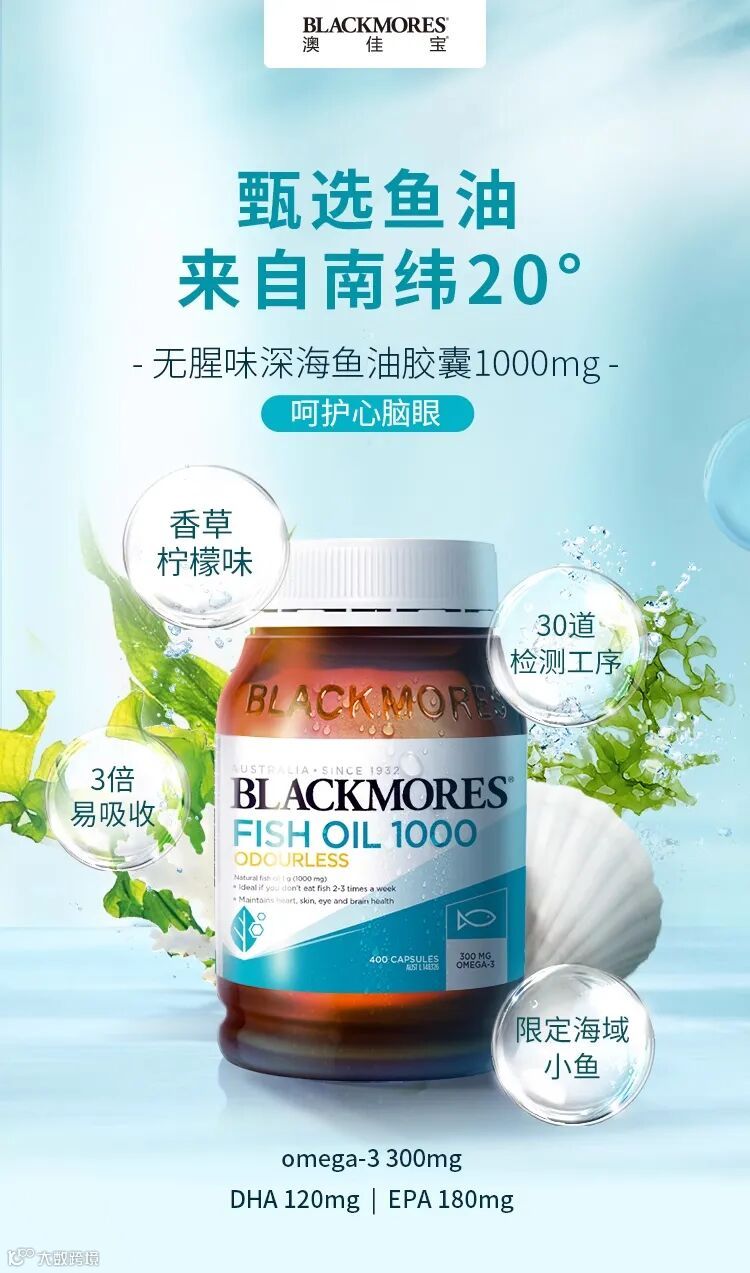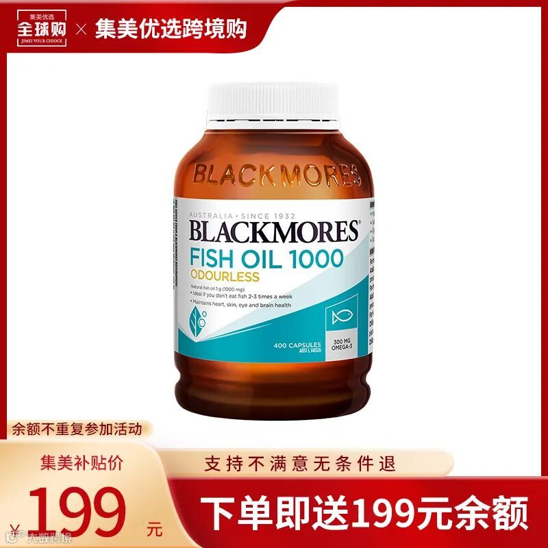 【试吃补贴·限购1瓶】BLACKMORES澳佳宝无腥味深海鱼油胶囊1000mg 400粒/1瓶