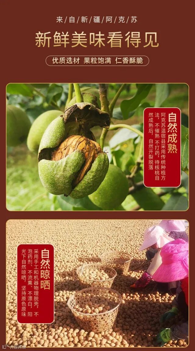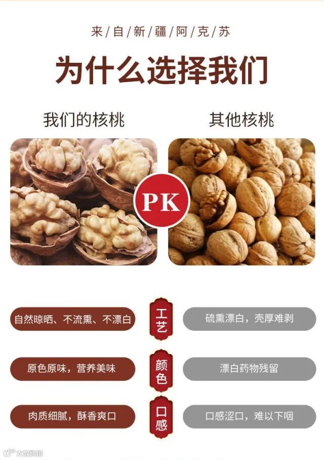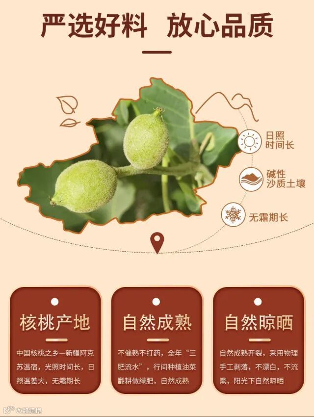 保存:由于核桃富含油脂,容易受潮变质,因此建议存放在干燥、阴凉处,以保持其酥脆口感