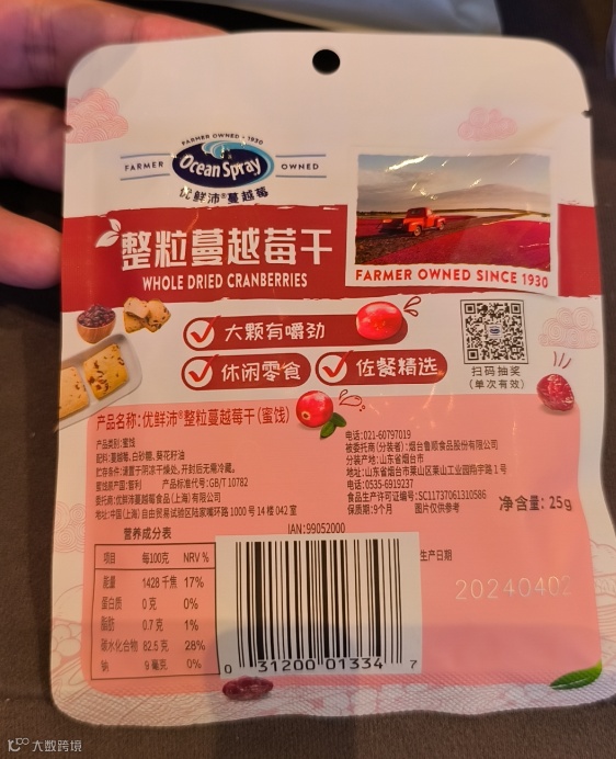 优鲜沛这款蔓越莓干