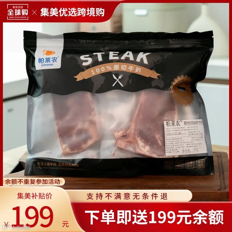 【试吃补贴·顺丰冷链直发】澳洲帕莱农澳洲谷饲战斧牛排1000克/箱(4-5片)