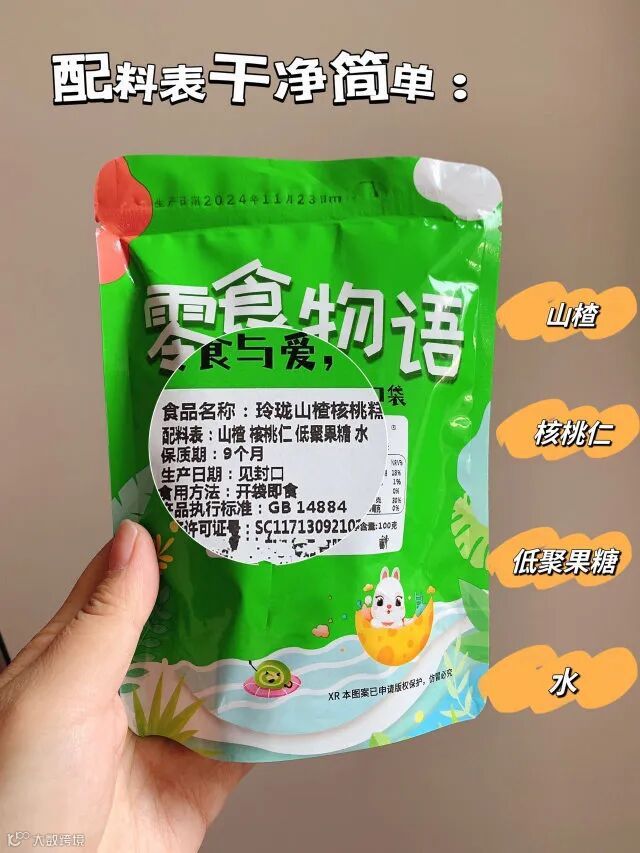 配料表超很干净!零添加!只有山楂、核桃、果糖和水