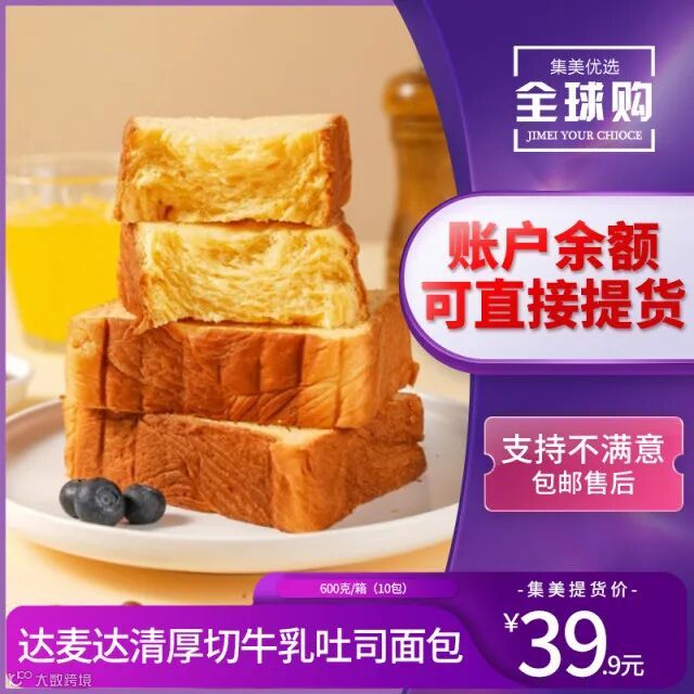 【余额提货】达麦达清厚切牛乳吐司面包600克/箱(10包)