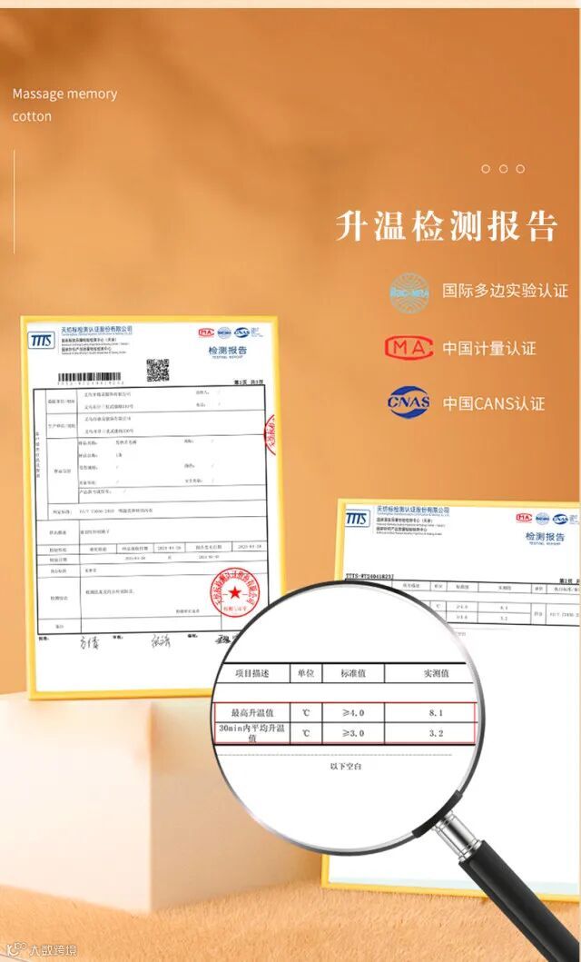 专业机构检测,干最高升温8.1° 30min 平均升温3.2° 耐摩擦 干摩达到4-5级 湿摩达4级
