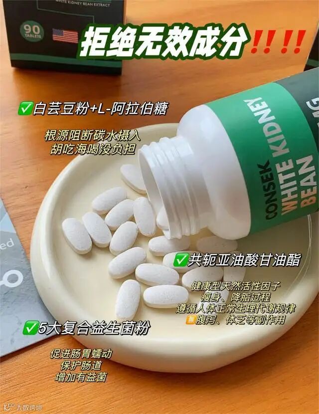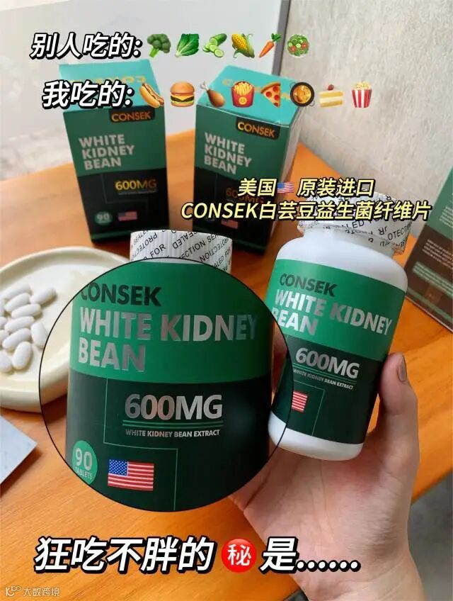 【试吃补贴】美国us原装进口CONSEK白芸豆益生菌纤维片90粒/瓶