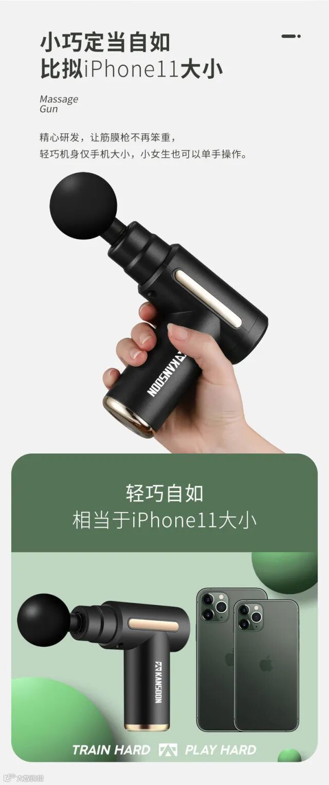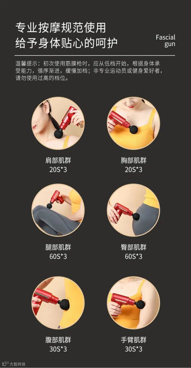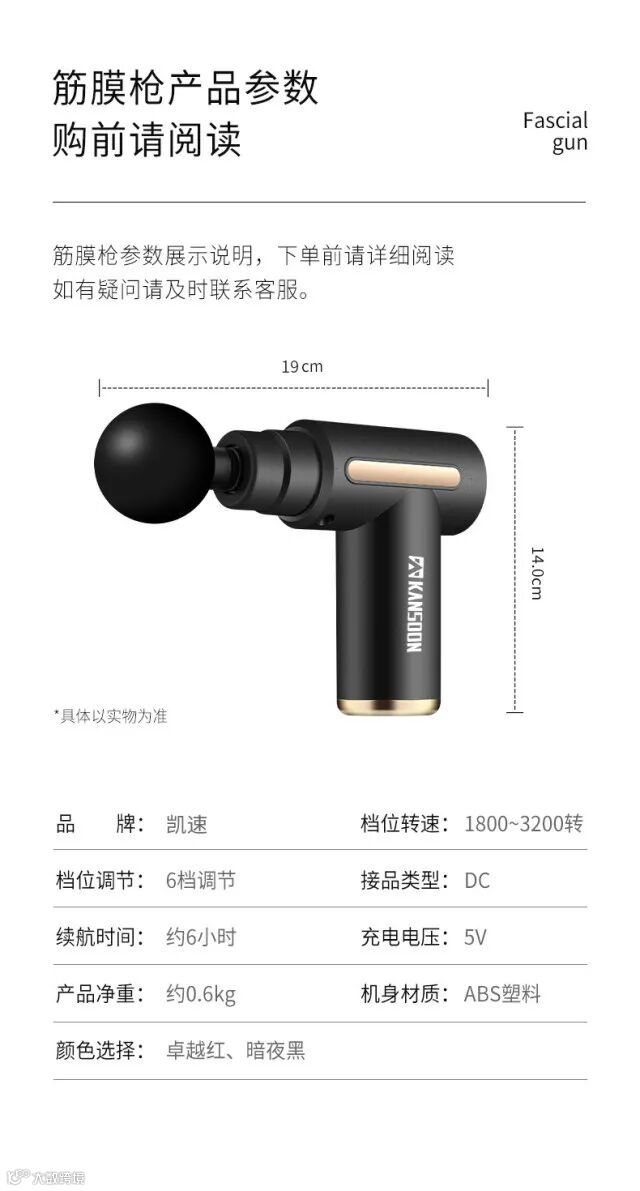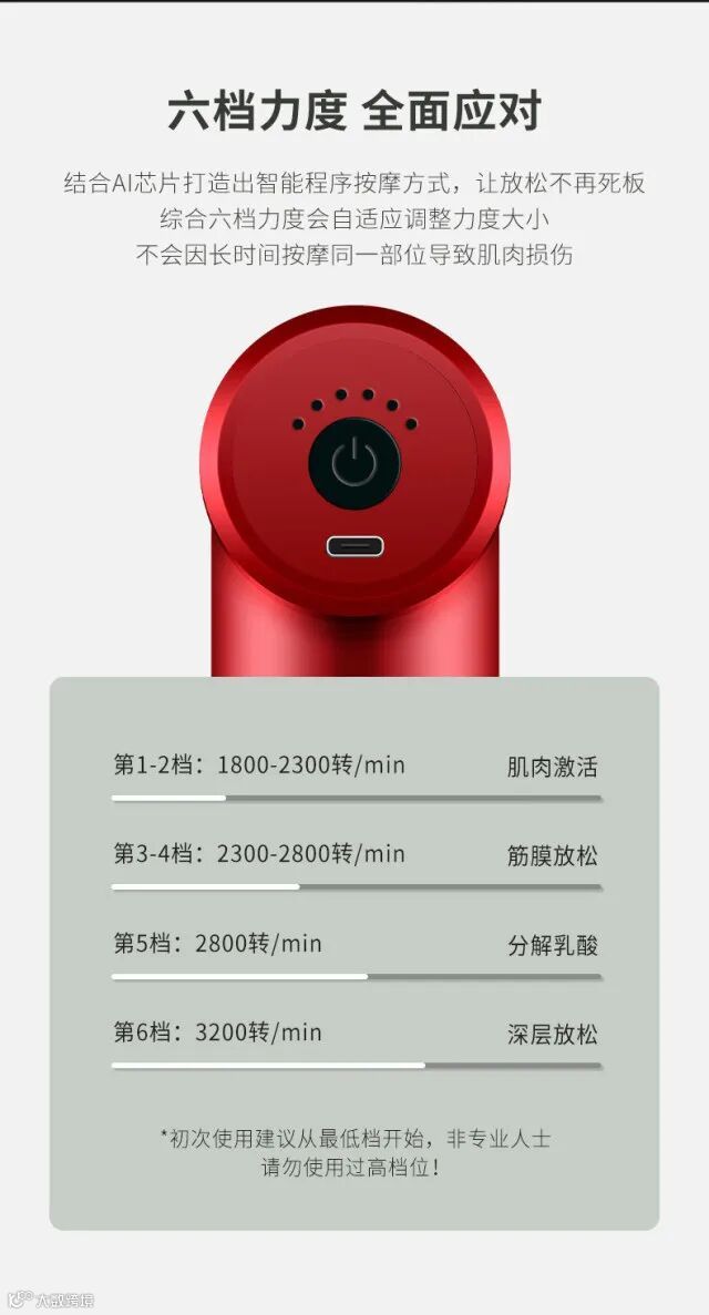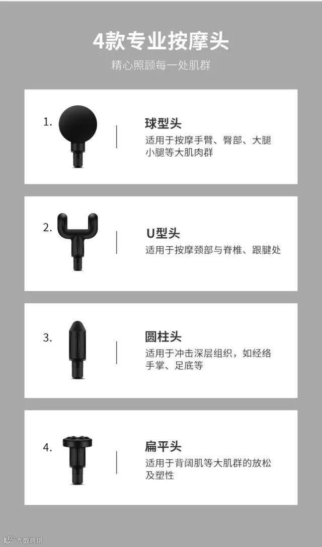 【产品清单】:筋膜枪枪体*1把,按摩头*4个,Type-c数据线*1根,说明书*1本
