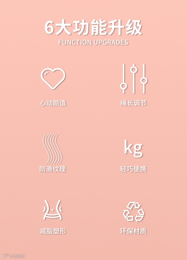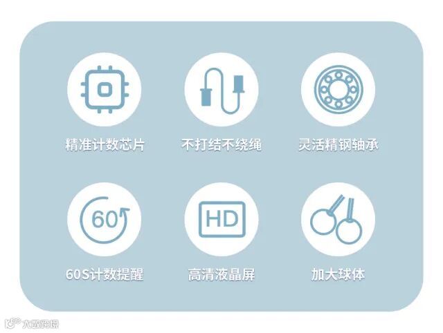 【使用技巧】:根据自己身高可以调整长度,双脚并拢踩绳,两手握手柄拉直到腋下