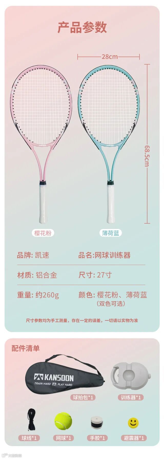 【产品尺寸】:球拍25615012mm