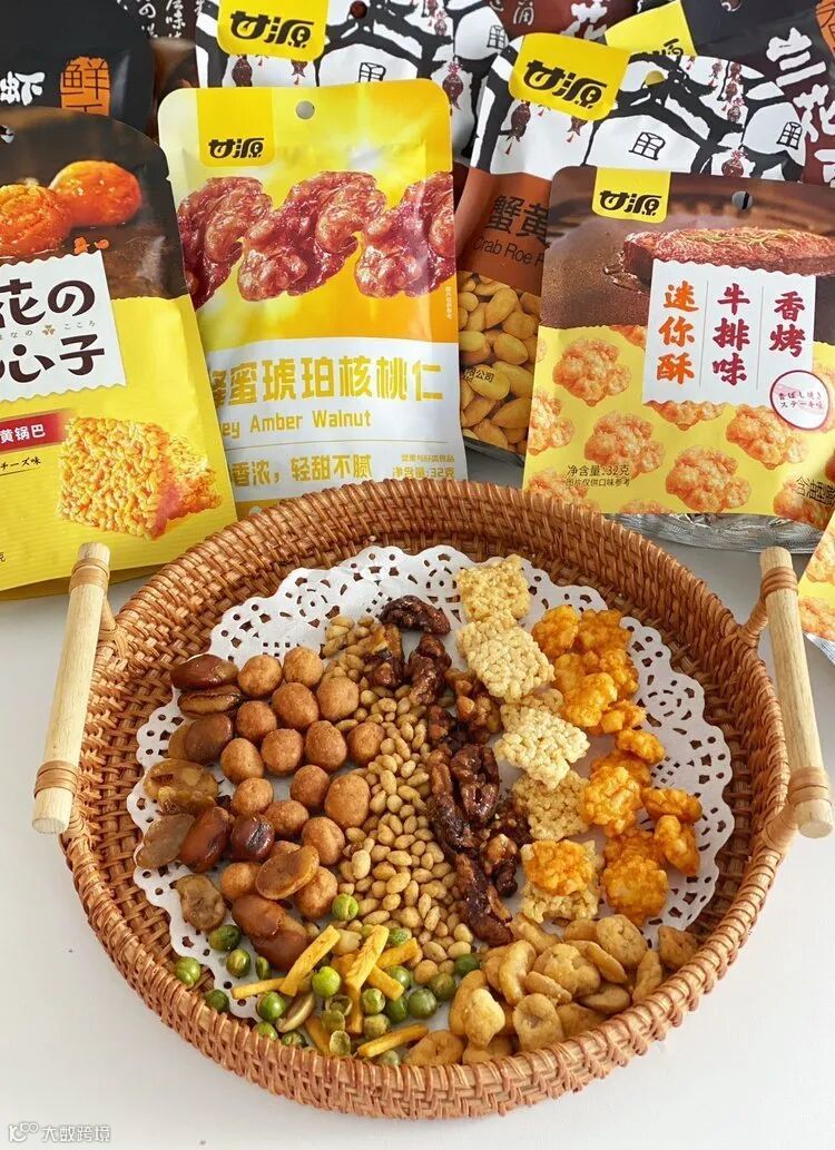 咸蛋黄迷你酥、蟹黄味瓜子仁、虾条豆果、蟹黄味蚕豆、芝麻琥珀核桃仁、多味花生、原味青豌豆、每日坚果、蟹黄味榛子仁、咸蛋黄锅巴
