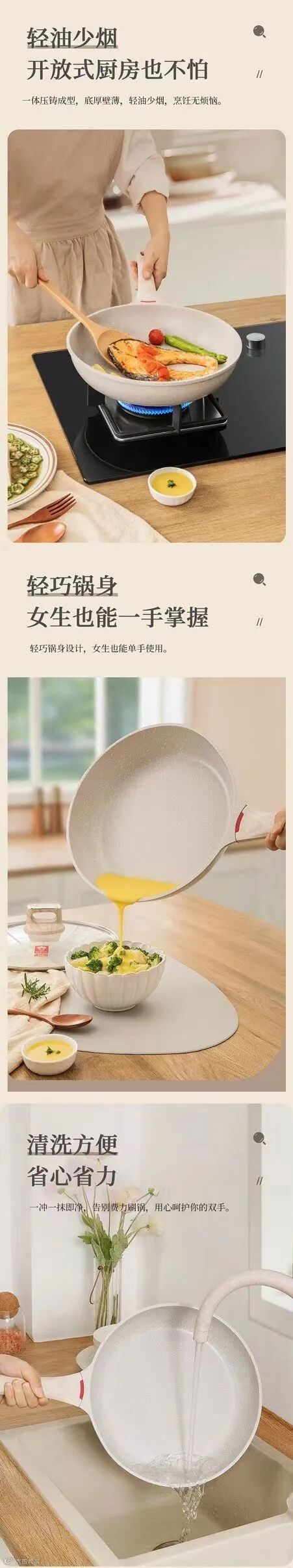 麦饭石不粘煎锅,3倍耐磨,保持持久不粘性