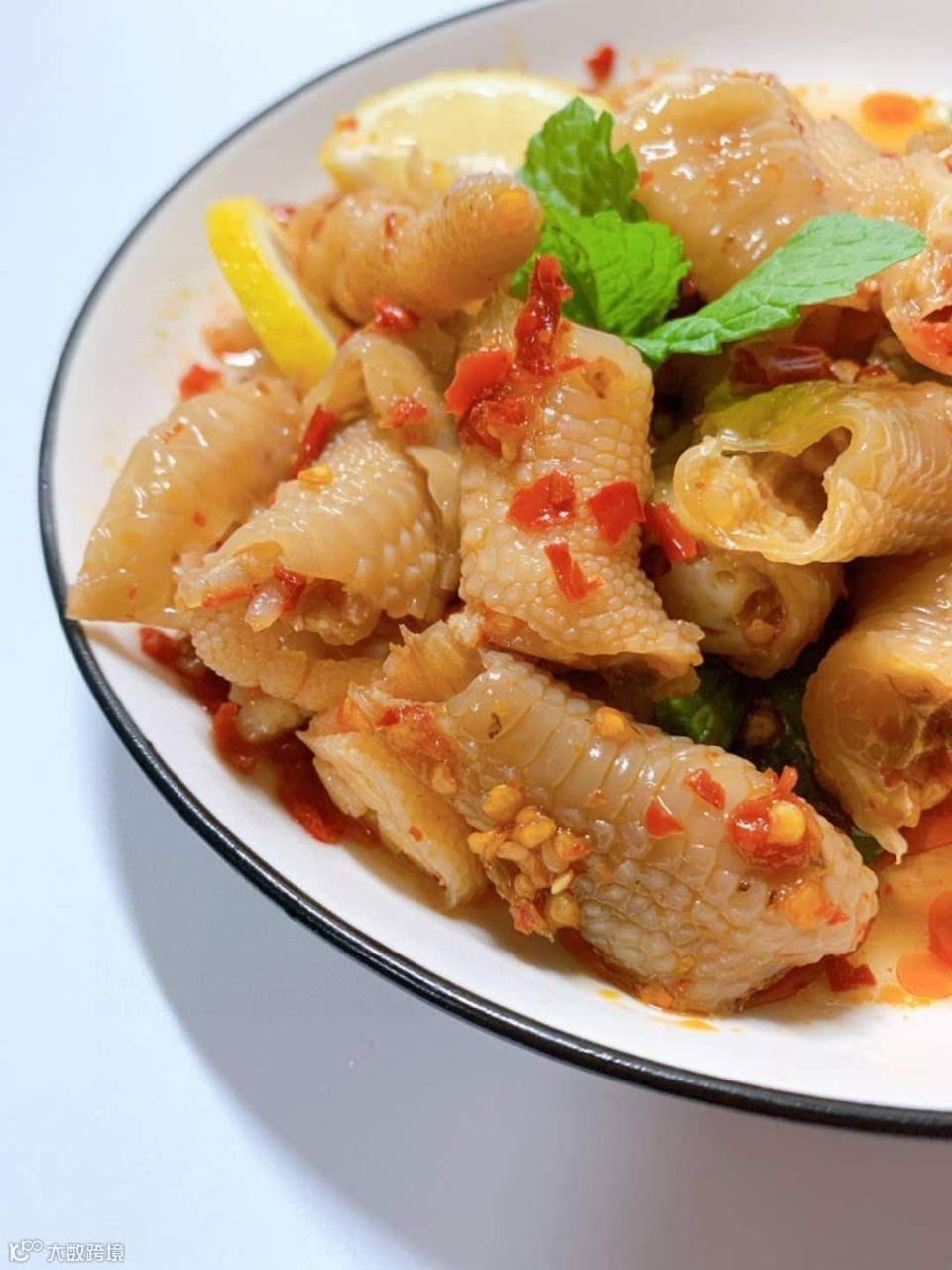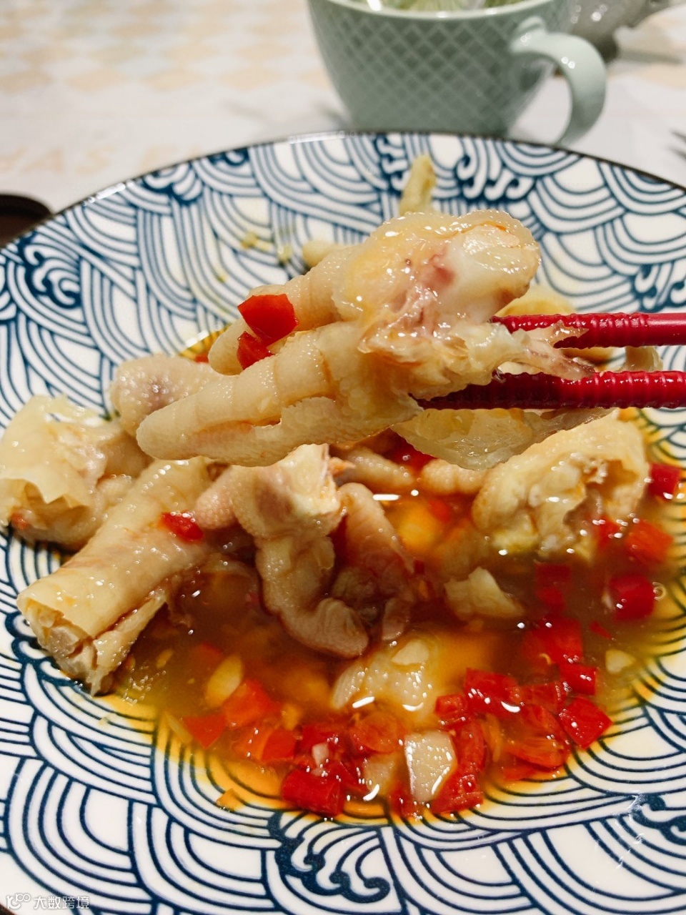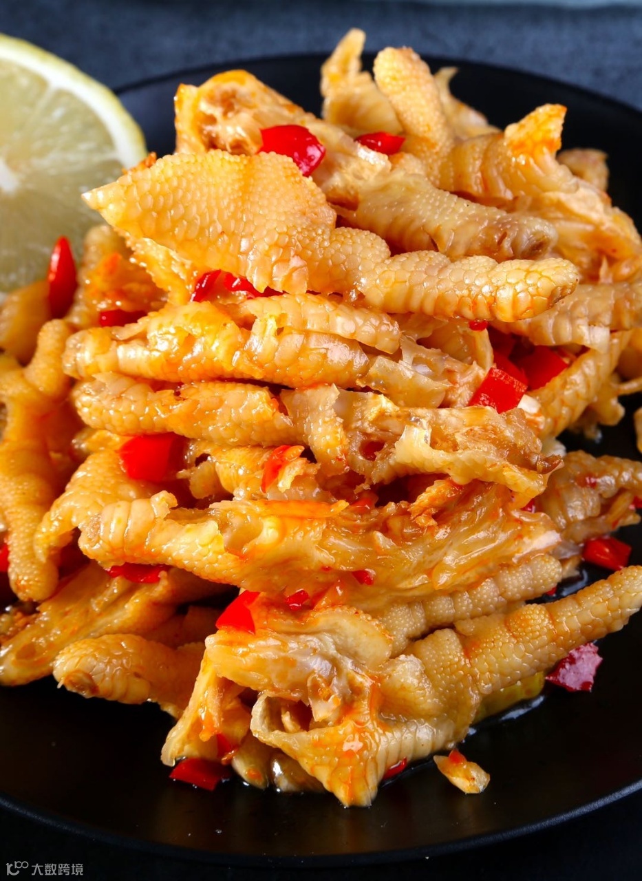 【配 料】去骨凤爪、笋丝、饮用水、食用盐、白砂糖、鸡精、陈醋、蚝油、麻油、红油、熟芝麻、柠檬、辣椒、胡椒、葡萄糖酸-δ-内酯、乳酸链球菌素、脱氢乙酸钠