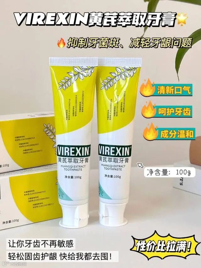 【试用补贴·满3支包邮】VIREXIN黄芪萃取牙膏100g/1支