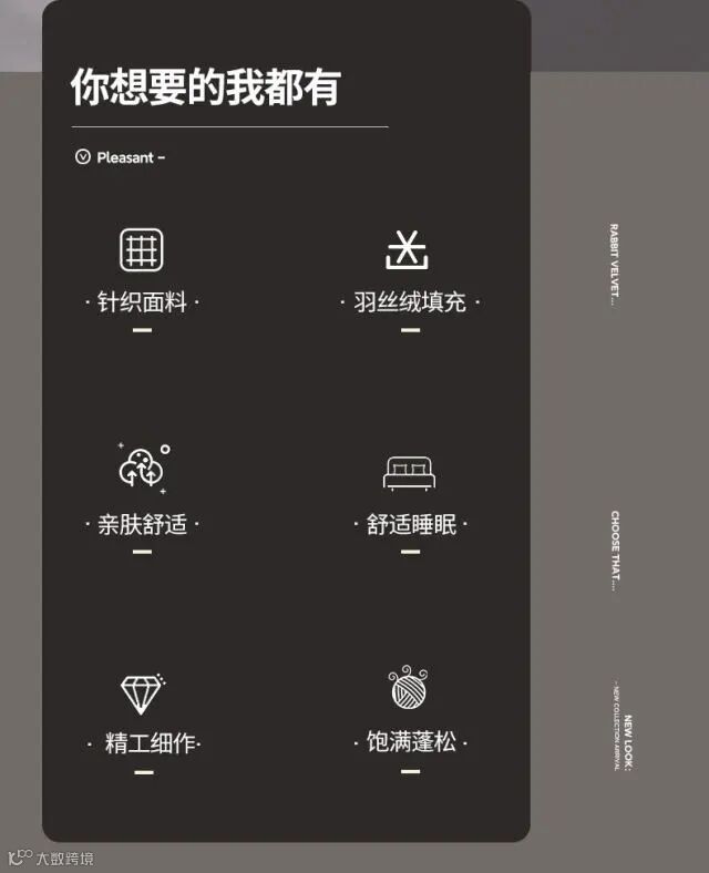 1、【兔毛提花面料】精选兔毛提花面料,绒毛细腻丰盈,肌理触感,柔