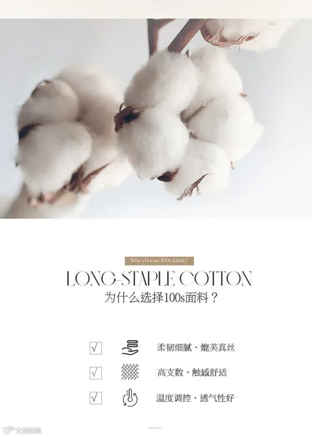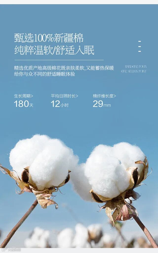 1、【长绒棉面料】新疆长绒棉,纤维细长,韧性高,弹性好,亲肤细腻,适合裸睡;
