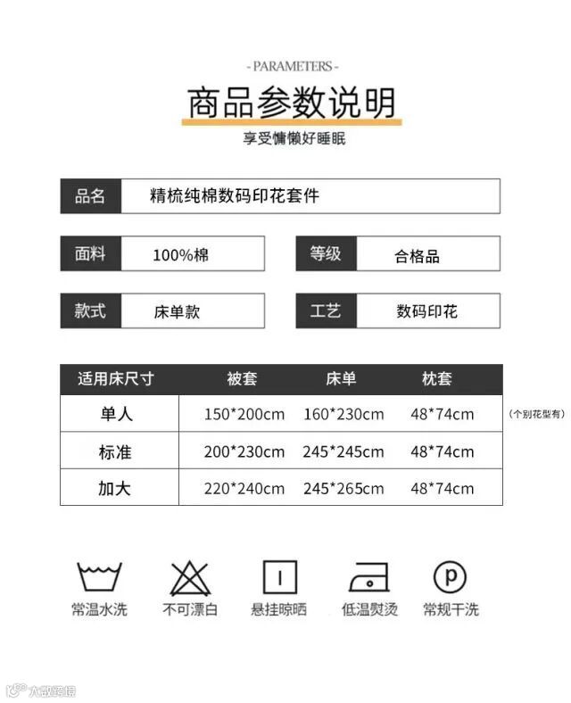 1、【100支新疆长绒棉】甄选100支新疆长绒棉面料,面料舒适柔软细腻,高支高密,纯净无刺激,裹紧棉花的怀抱,呼吸着棉花吸收的每一缕阳光,让睡眠回归自然;