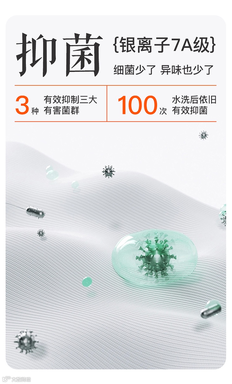 3.银离子抗菌防臭,远红外7A抗菌 ——有效抑制各种细菌 抑制脚气 帮助你远离脚臭脚痒