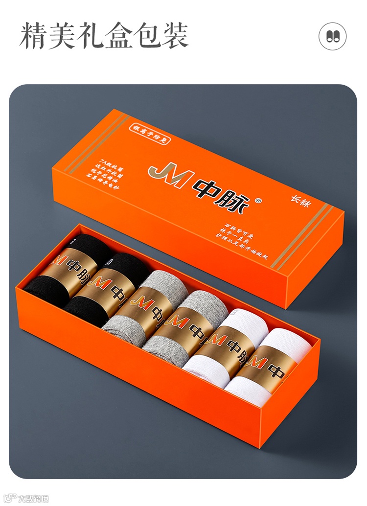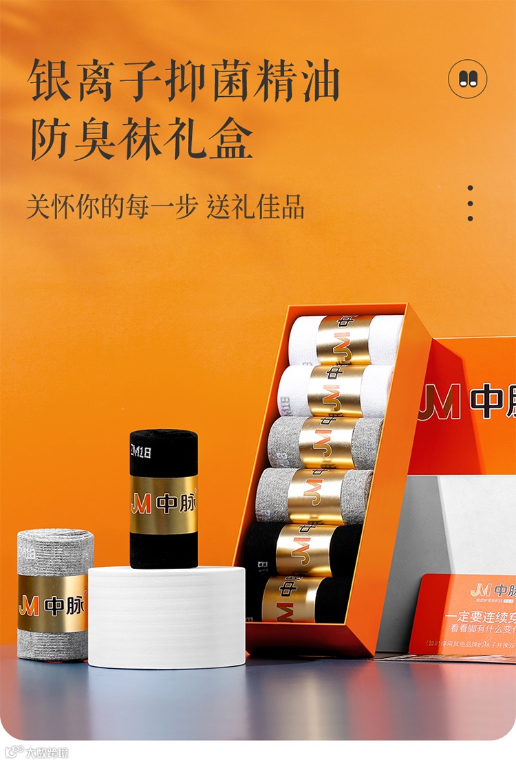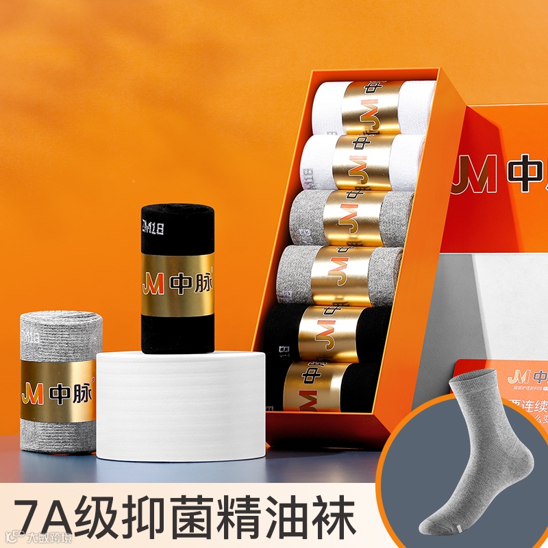 【新品补贴】JM中脉7A抗菌精油男袜6双3色/盒 原价:149元 粉丝群补贴价:89元