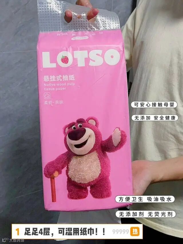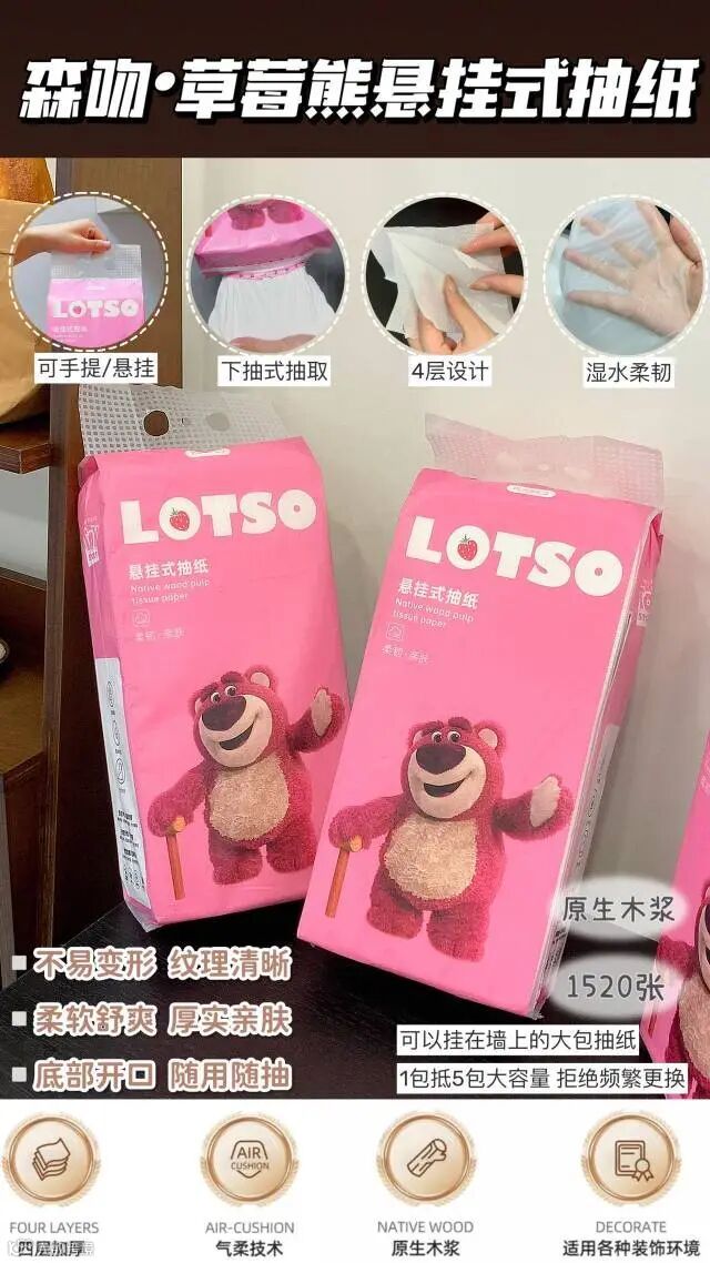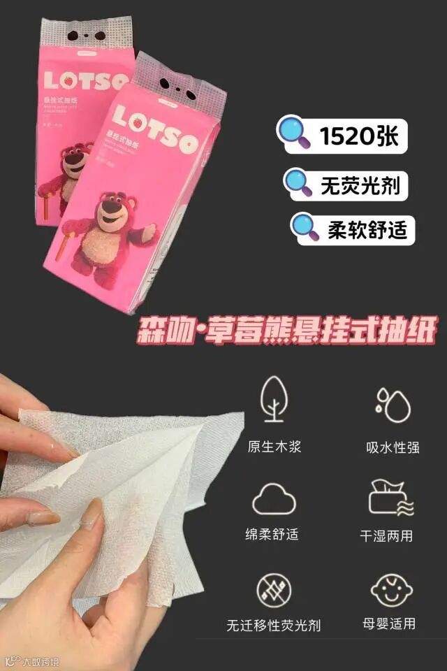 【新品补贴推荐】Disney迪士尼草莓熊悬挂式抽纸 180mm×165mm×1520张 原价:59元 粉丝群补贴价:39.8元