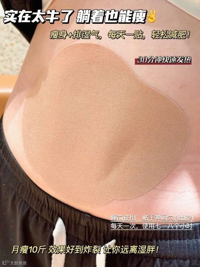 [使用方法]睡前使用,使用时去掉离型纸,清洁使用部位;贴于神阙穴(肚脐),早晨去除。每天一次,连续使用三周以上,经期勿用。
